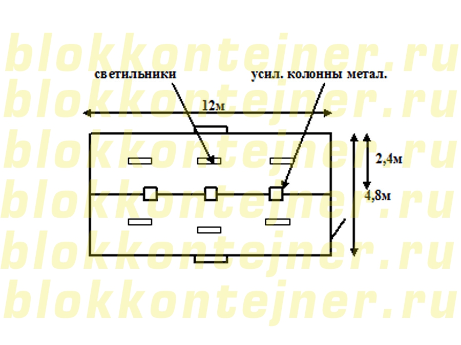 Блок -модуль  БМ 12,0*7,2*2,5м  состоит  из 2-х БК  12,0 х 2,4 х 2,5м